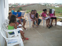 In July, Andy & Becky Flink, my mom, and my brother & sister helped to put on a VBS program at the church in Lagoa de Itanega. We had a bunch of kids. Since then, the church at Lagoa de Itaenga has been overflowing with children. We consistantly average 30 kids on a Sunday night...which is a ton, when you consider that we average about 20 adults. The vast majority of them come from the neighborhood surrounding the church. And most of them are very consistent in attendance.